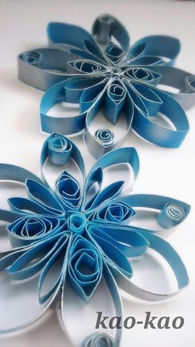 トイレットペーパーの芯をカットし、ペーパークイリングのようにクルクル… 仕上げに涼しげなスカイブルーとシルバーのアクリルスプレーで色をつけ、お花のオブジェを作りました。 ボンドでくっつけてありますが、コーティングすることで、よりしっかりした感…