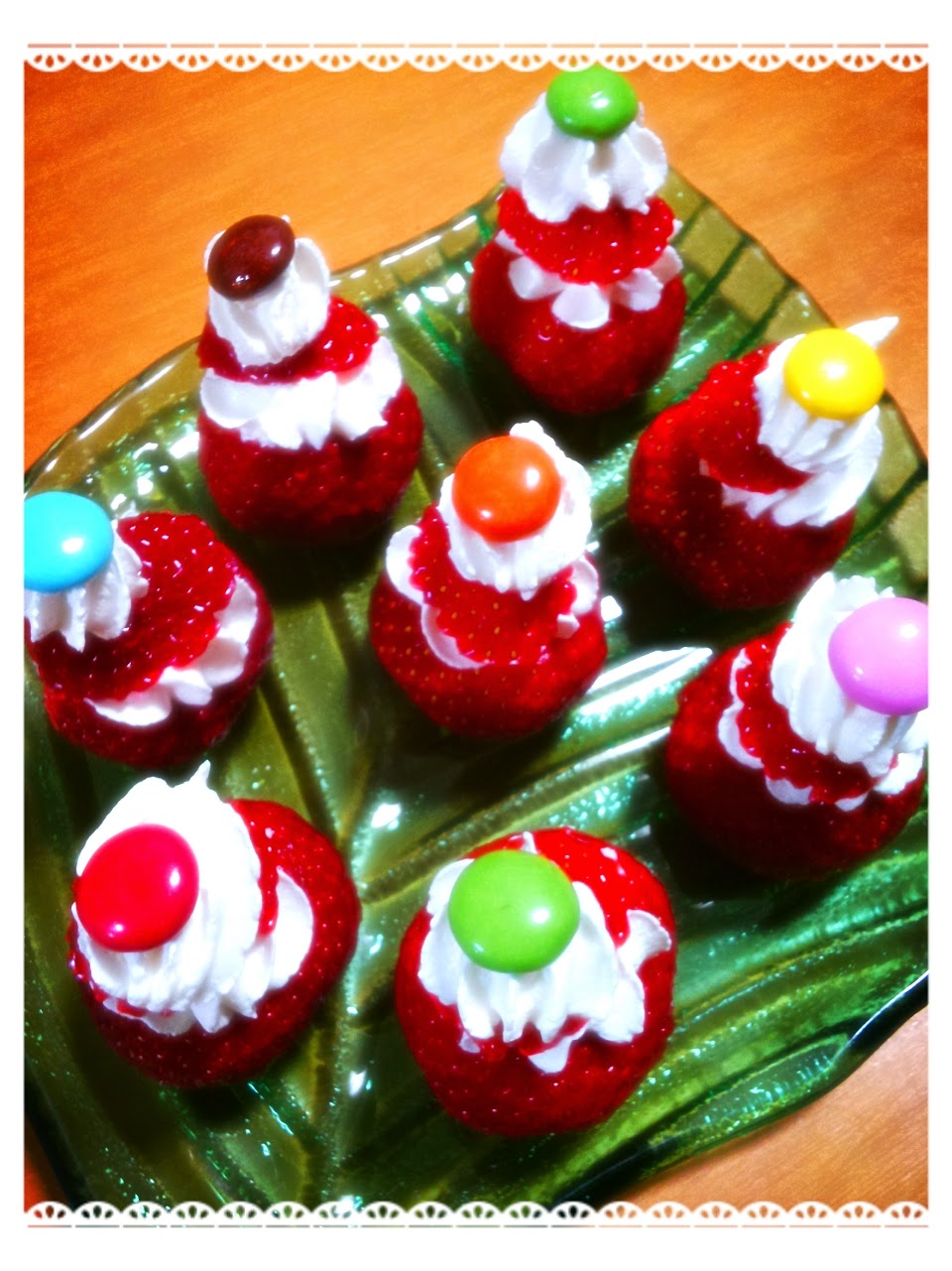 2014-12-31 苺のデザート♪ 果物 大晦日ですね。(*´ω`*) 次男くん、「お正月には凧上げするんだよ♪」と、今日は張り切って凧作り。 実際は、ほとんどパパが作っていましたが…。(笑) 夜は、家族で紅白歌合戦を見ながらオードブルを囲み、手巻き寿司を楽しみました~♪ 「カウントダウンまで起きてる~♪」と言う子ども達。 明日は、初日の出見れるかな?(^w^) 苺のデザートを作りました~♪